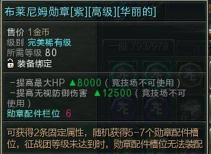 【布莱尼姆勋章紫高级华丽】HP8000+无视防御12500