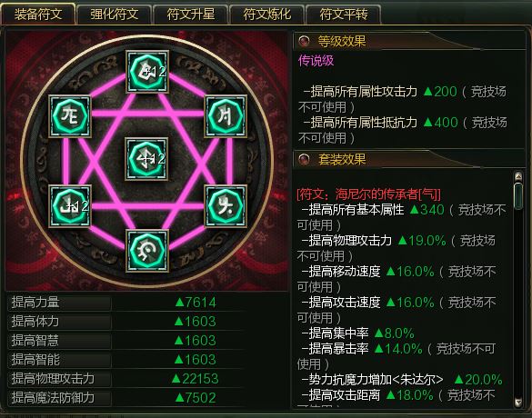 符文:海尼尔的传承者(气)灿烂华丽15星套装,最强无陨落符文