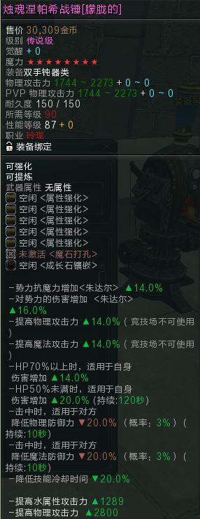 【90烛魂涅帕希大锤】8星免洗朦胧锤2800物攻