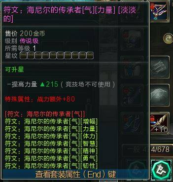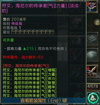 符文:海尼尔的传承者(气)淡淡力量单件,最强无陨落符文