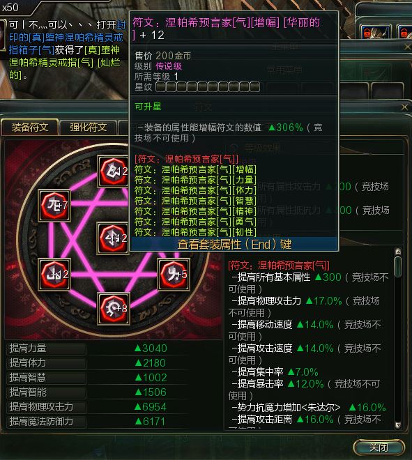 涅帕希预言家符文气+12+12+12套 6954 便宜卖了