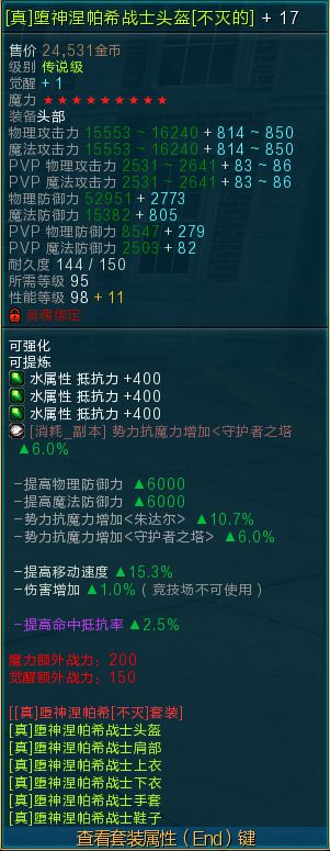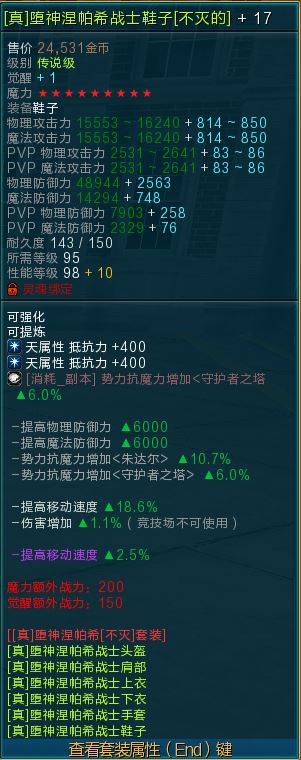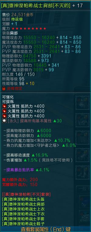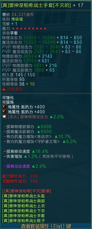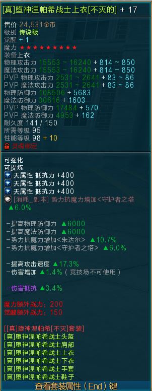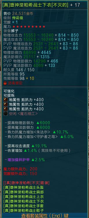 【95战士6件套不灭防具】6件全部17,全部9星,性能全10以上,6件都以觉醒!