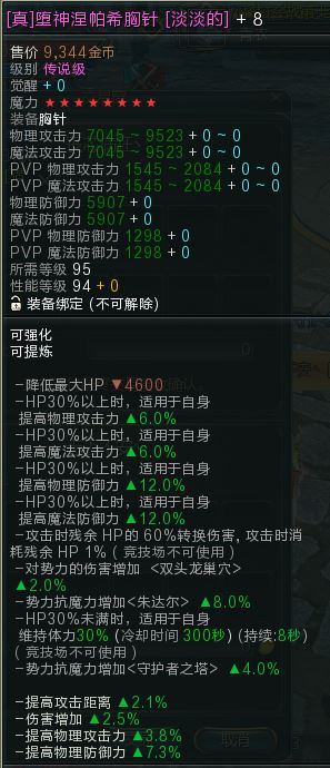 【95级真堕神胸针】物理攻击3.8%,强化+8,魔力8