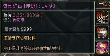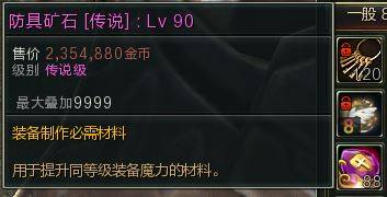 [防具矿石 [传说] : Lv 90]-88个不绑定-平均不到1.4一个