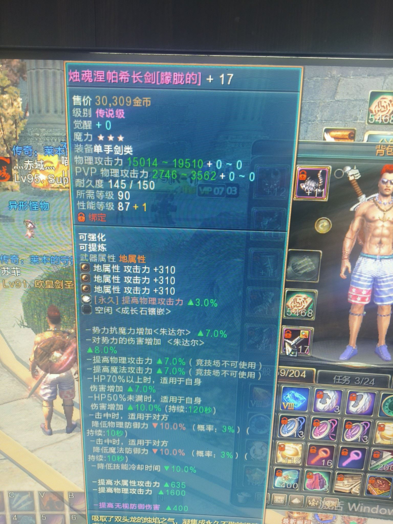 90+17长剑脱坑处理物攻1600魔石宝石齐全,最帅外形变更,便宜处理了买家自带解绑