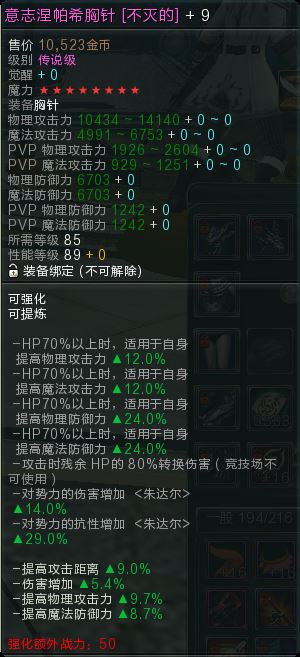 【意志涅帕希胸针(不灭的)】免洗极品属性9-8物理职业必备 伤害加成属性高