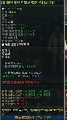 便宜出售95灿烂堕神魔法戒指,免洗可自己带可拿去升不灭。在仓库