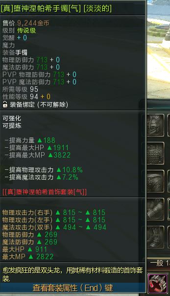 【〖真〗堕神涅帕希手镯(气)淡淡】+10.8%物攻,极品属性