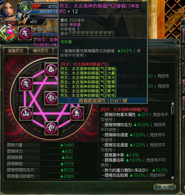 太古海神的赐福气符文+12+12套 增幅勇气神圣品质 8022便宜卖了