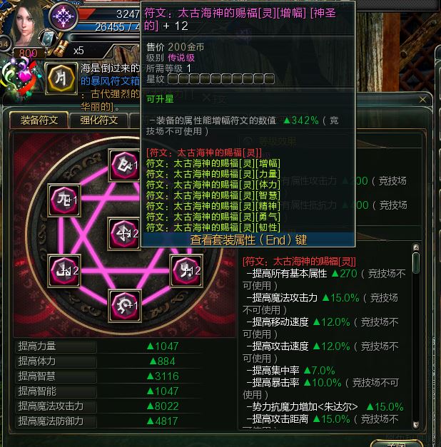 太古海神的赐福灵符文 神圣套+12+12+12 除了体力全神圣