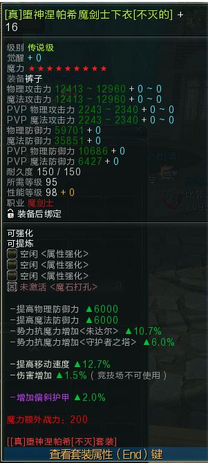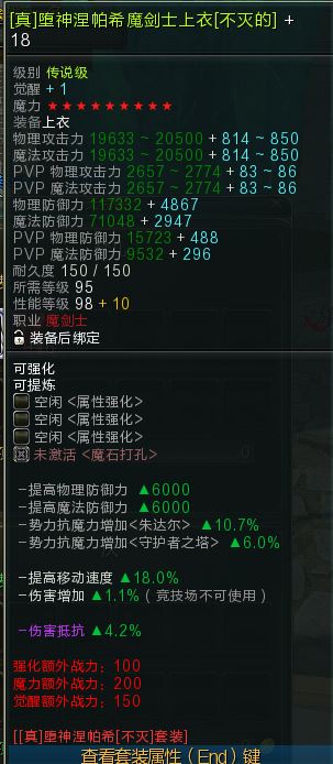 【(真)堕神涅帕希魔剑防具套装】+18-9星上衣+16-9星裤子 两件套 免洗