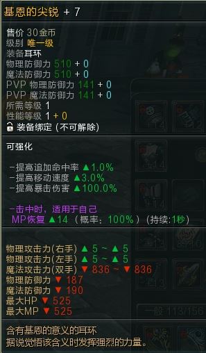 【基恩的尖锐】增加100暴击伤害的极品耳环