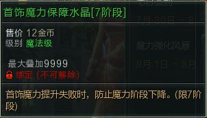商品在第一个角色1+21个,免费使用首饰魔力保障5(7),保障7有11个,买家自带金币强化