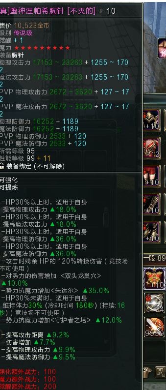 【95真堕神涅帕希胸针(不灭的)】+10 9星 免洗极品物理9.9 物理必备~