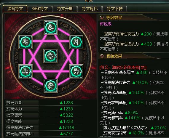 符文:海尼尔的传承者(灵)淡淡13星套装,最强无陨落符文