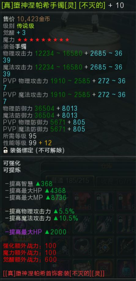 【95真堕神涅帕希手镯灵】不灭的+10-9x,觉醒3,超越12