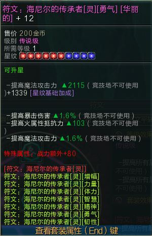 符文:海尼尔的传承者(灵)华丽16星勇气单件,最强无陨落符文