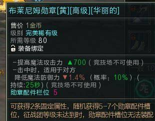 【布莱尼姆勋章黄高级华丽】魔攻700,降防1.4%