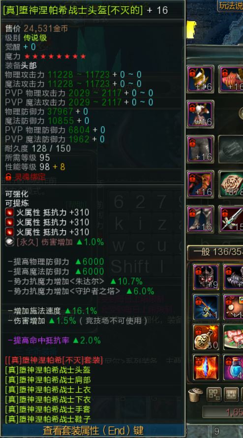 【战士95不灭防具一套】战士不灭防具95+16全部8星 买家自己出解绑