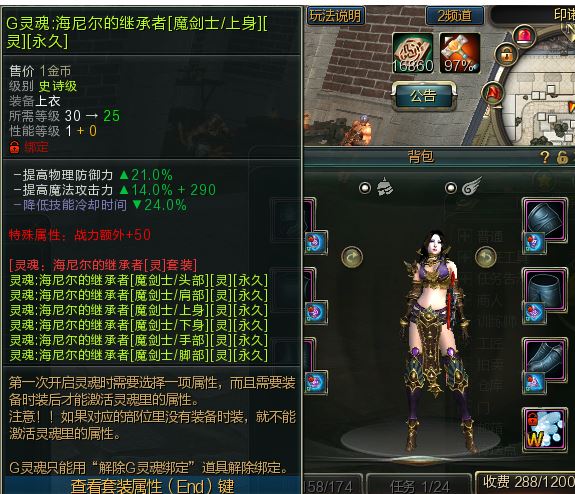 【灵魂:海尼尔的继承者[魔剑士】灵,永久套,免洗,买家自带6个灵魂解绑