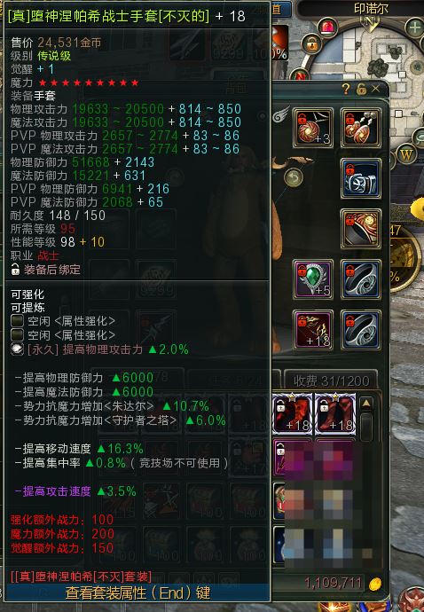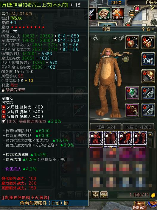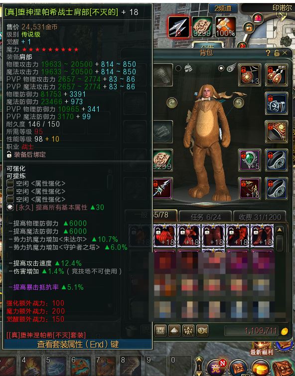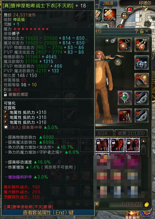 【顶级战士95防具 战士不灭防具】战士95不灭防具一套全部+18-9星全部觉醒