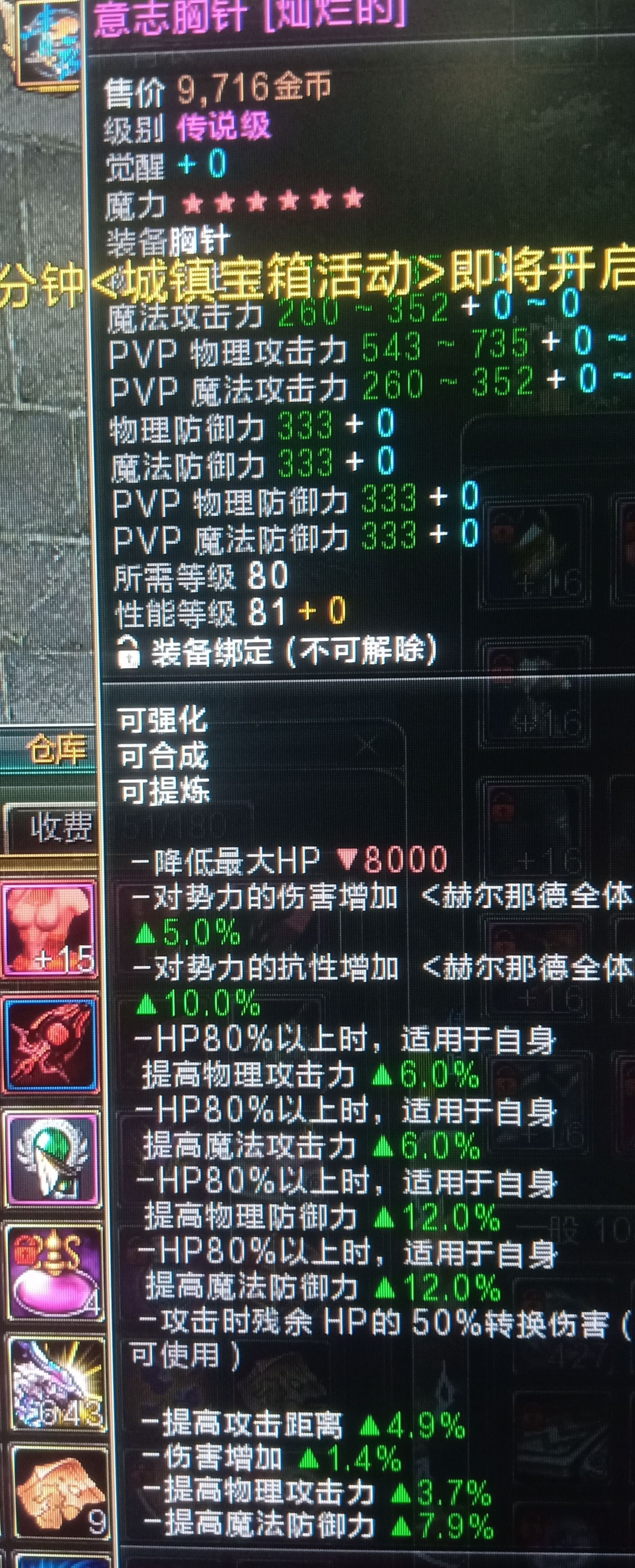 【灿烂意志六星胸针】3.7物攻