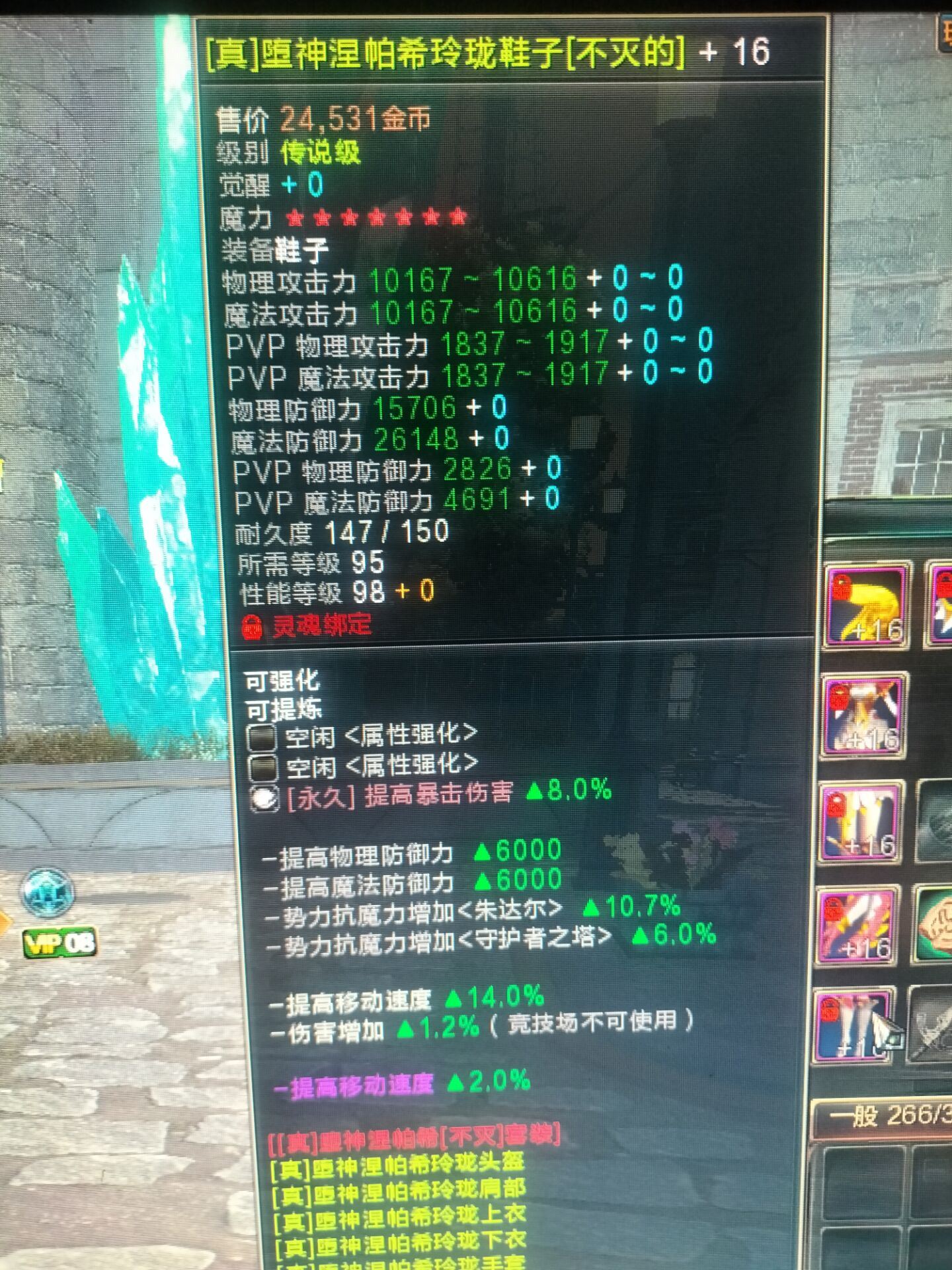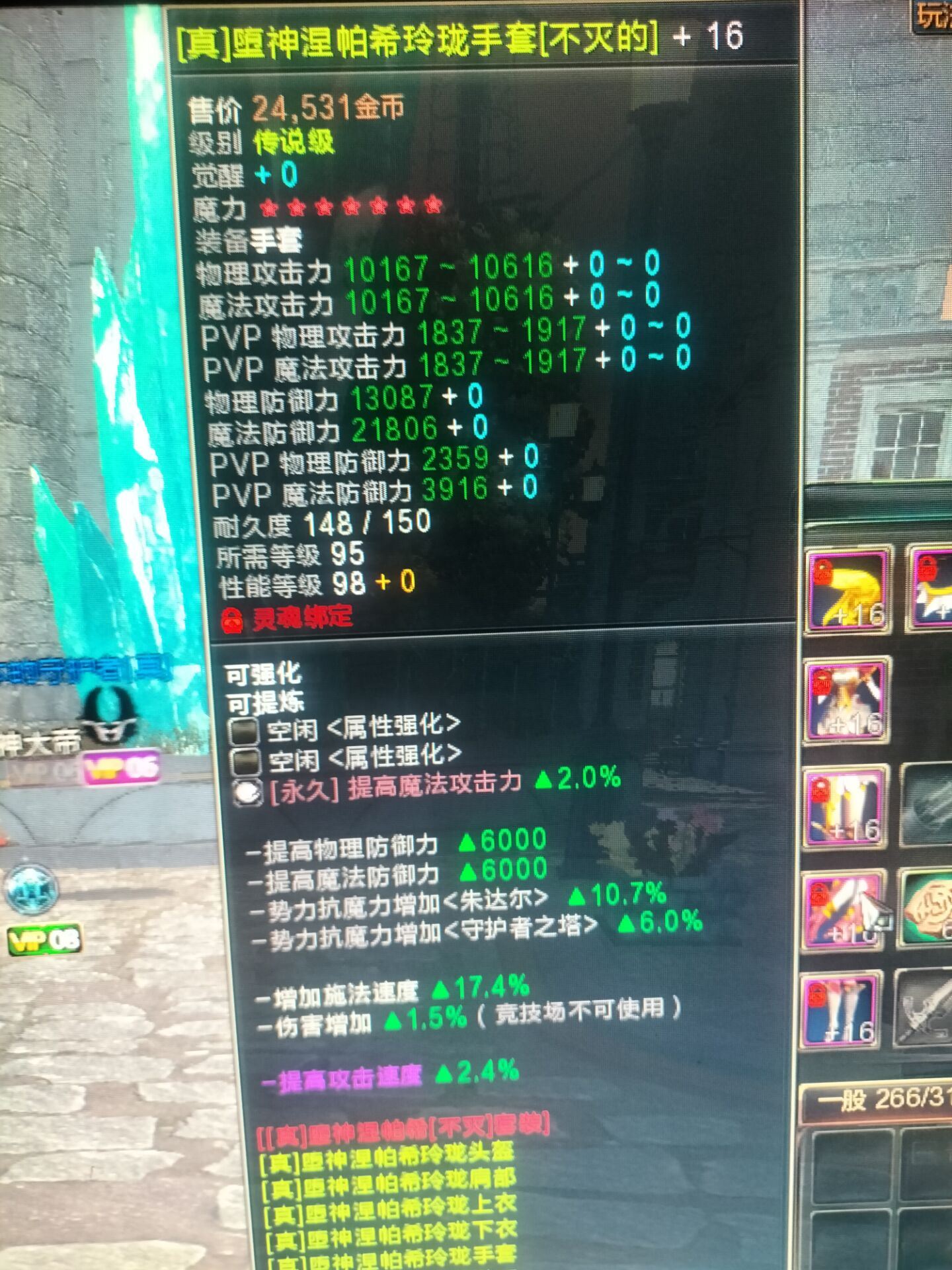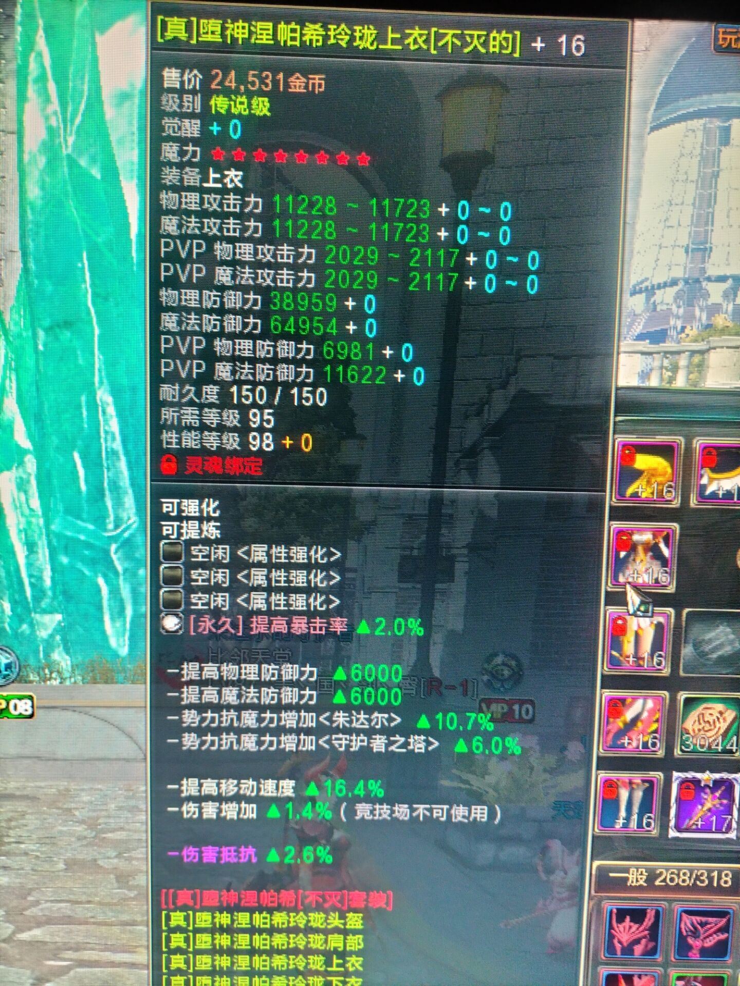 【玲珑 95不灭防具6件成品套】全+16 4件7星1件8星1件6星自带36个解绑