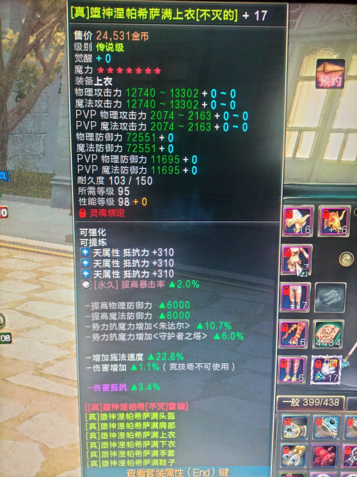【萨满95不灭防具6件成品套】2件+17 4件+16 7星 6星 买家带解绑