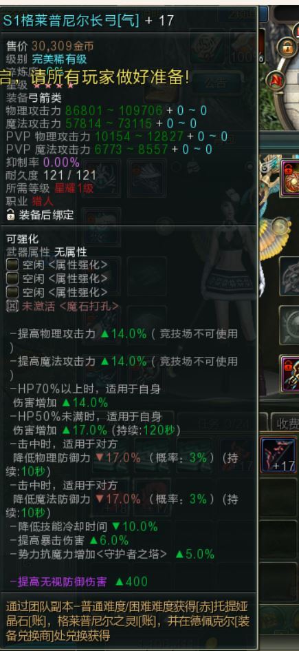 【S1格莱普尼尔长弓气+17】S1长弓气 +17-4星 吊打新天龙