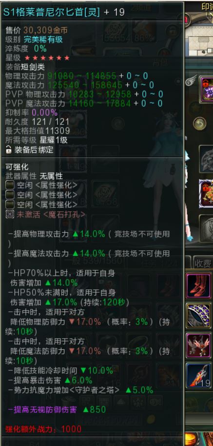 【S1格莱普尼尔匕首灵+19】S1匕首灵+19 6星横扫9大陆吊打新天龙