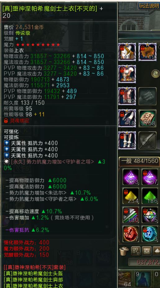 【魔剑95不灭防具】魔剑不灭防具95+18+19+20觉醒9星套 买家出解绑