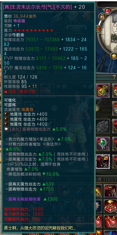 全服唯一一把85-20-10星的长弓,比2代天龙+18-9星叼多了,很具备收藏价值,不玩了还能卖,解绑又便宜,买到就是赚到,抽18石头也爽。