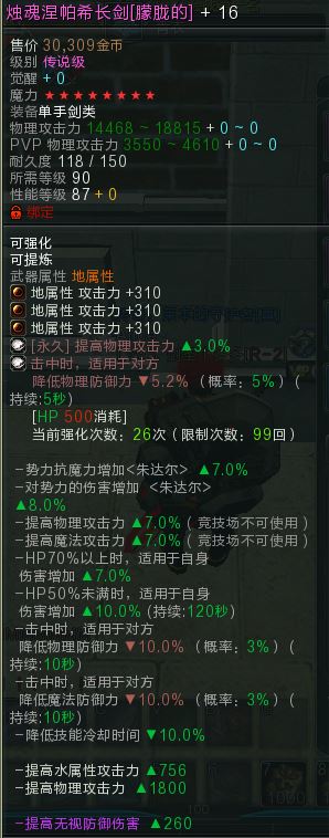 烛魂涅帕希长剑16加8星-1800物理