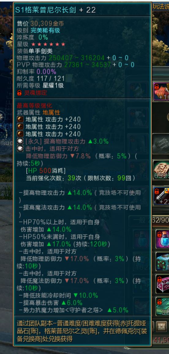 【[S1格莱普尼尔长剑]】+22 -6星 自带解绑 带上直接变百万大佬