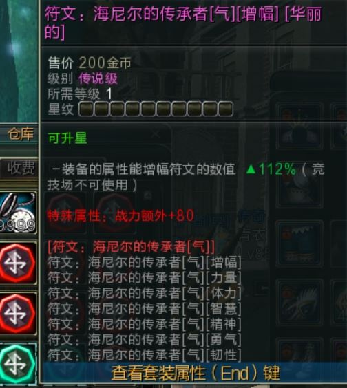 【符文:海尼尔的传承者[气]增幅】1件白板T0最强符文脱坑贱甩老板拿去凑套+18