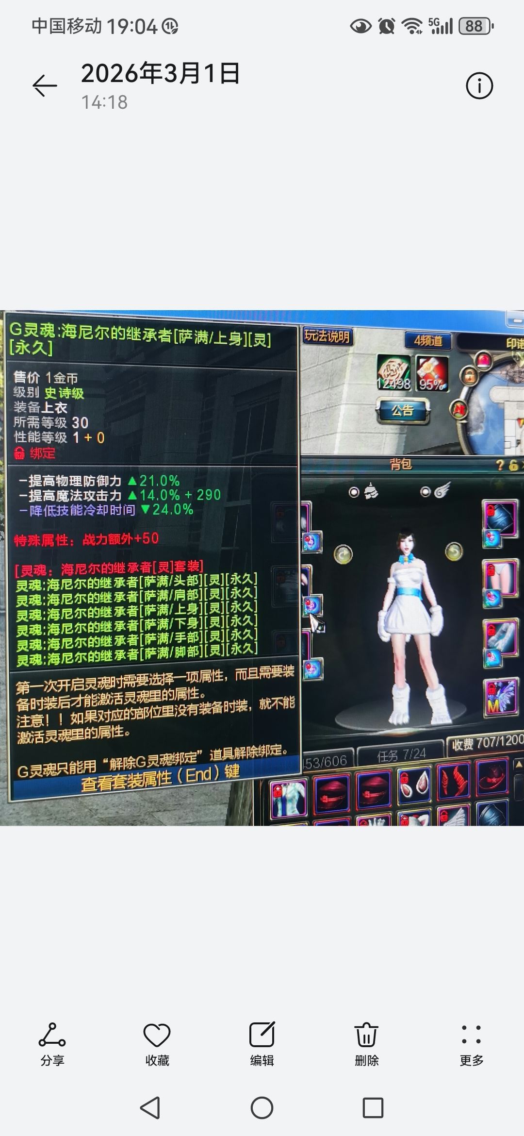 海尼尔灵魂带在元素号上,客服6个G灵魂解绑在元素收费背包,便宜出售了。