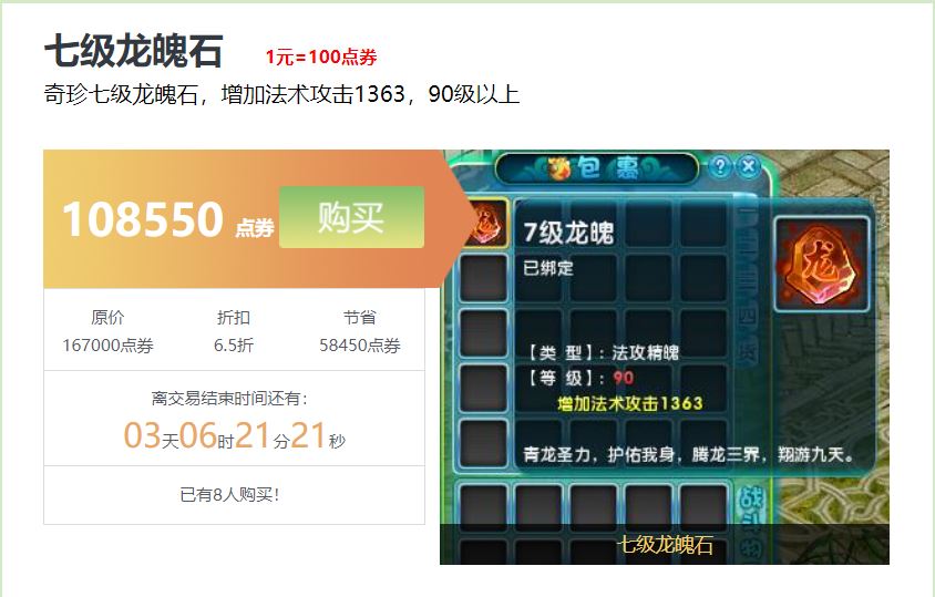七级龙魄石-108550点券暖春团购季限时活动官方充值★安全赔付,找回立刻赔★