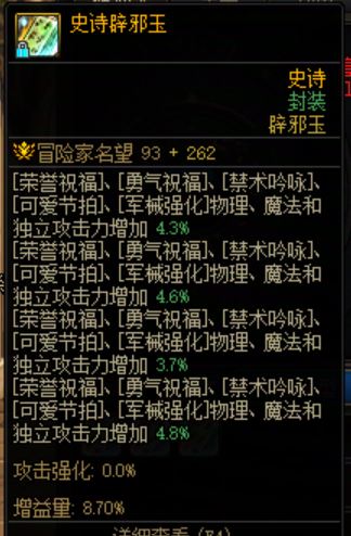 史诗17.4百分比奶玉,三攻百分比3.7+4.3+4.6+4.8,BUFF8.7