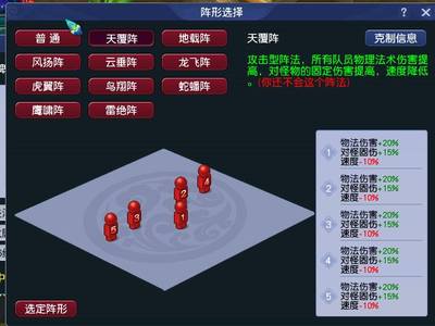 天覆阵【物法伤害+20%,固伤+15%,速度-10%】大佬必备