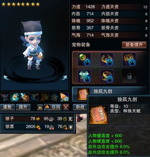 天赋10 令狐小冲力道12体魄8★安全赔付,找回立刻赔★