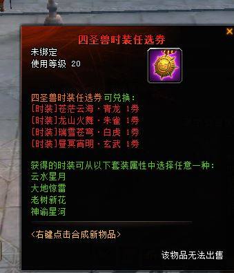 【四神兽时装任选劵】四神兽时装任选劵一张