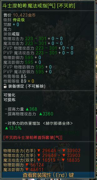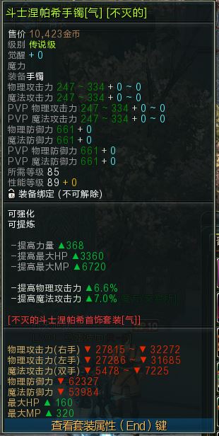 85不灭斗士涅帕希手镯+魔法戒指(气)2件套。属性已洗好。