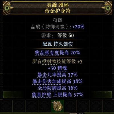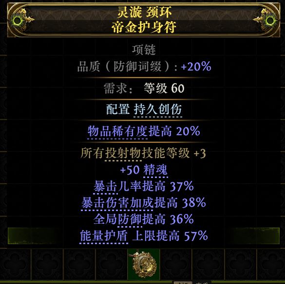 ⭐镜子项链⭐包镜子⭐50精魂+3投射技能+双暴击爆伤+全局防御+护盾%⭐
