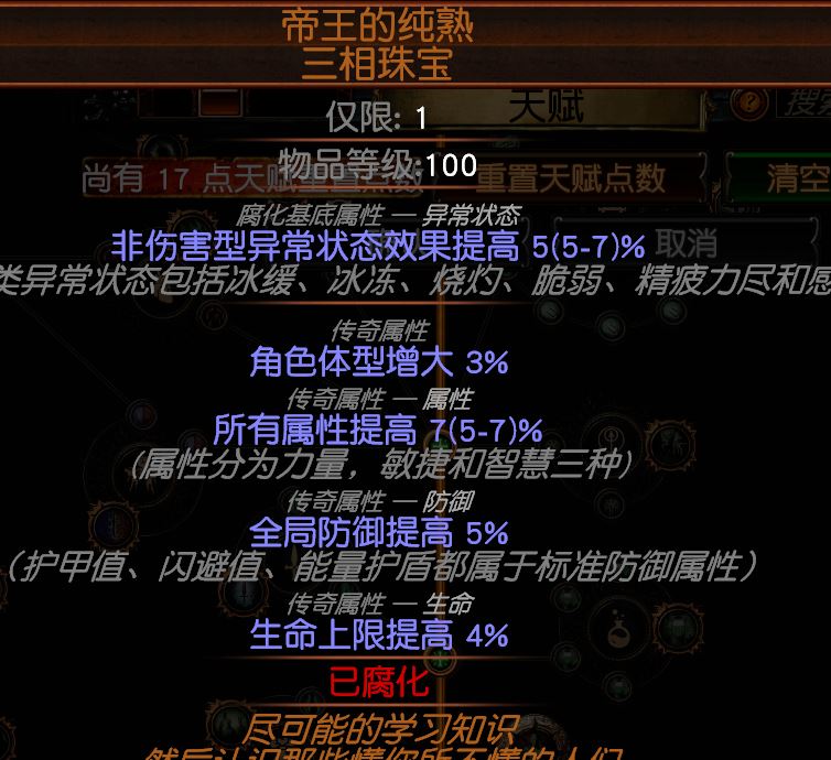 能量刀很全能,速刷泰坦菌潮15层T17,血转盾的能量刀,遗产药剂进图按一次就不用管了,伤害较1血高一倍多,适合速刷,所以找了很多攻速移速,提配置找珠宝腰带,其他都是顶配了,四正戒指,遗憾附魔头,深渊孔鞋,146浮华,3词三项,熔炉盾,双瓦象牙塔