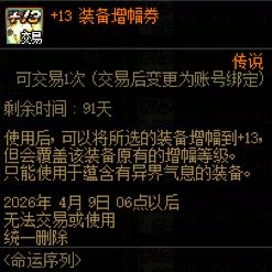 【4月9日前有效】【装备增幅券】+13装备增幅券 100%成功 打造高增幅必备 在线发货 可邮寄/可交易