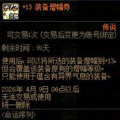 【4月9日前有效】【装备增幅券】+13装备增幅券 100%成功 打造高增幅必备 在线发货 可邮寄/可交易