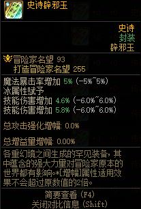 技攻10.4+冰属性赋予+魔法暴击率5,名望348,需要加冒险团等14天才能交易,乱世现货