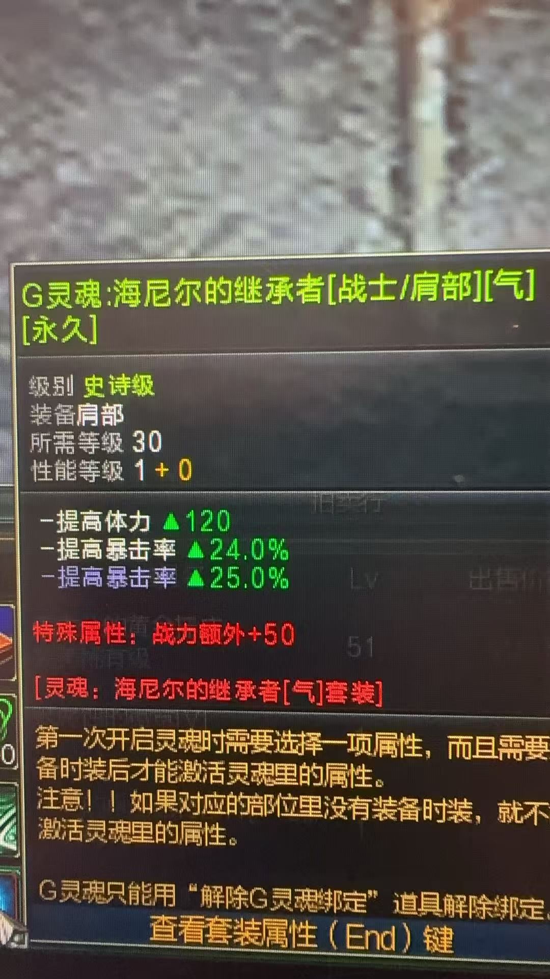 海尼尔的继承者战士永久灵魂肩膀暴击加49