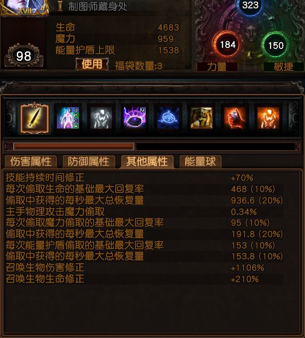 顶配女巫召唤电蜘蛛八灵体,1106召唤伤,6200血盾,满元素抗混沌抗,满双格挡