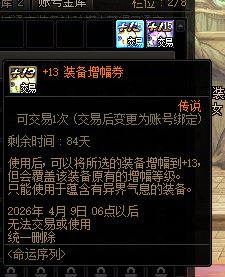 【4月9日前有效】【装备增幅券】+13装备增幅券 百分百成功